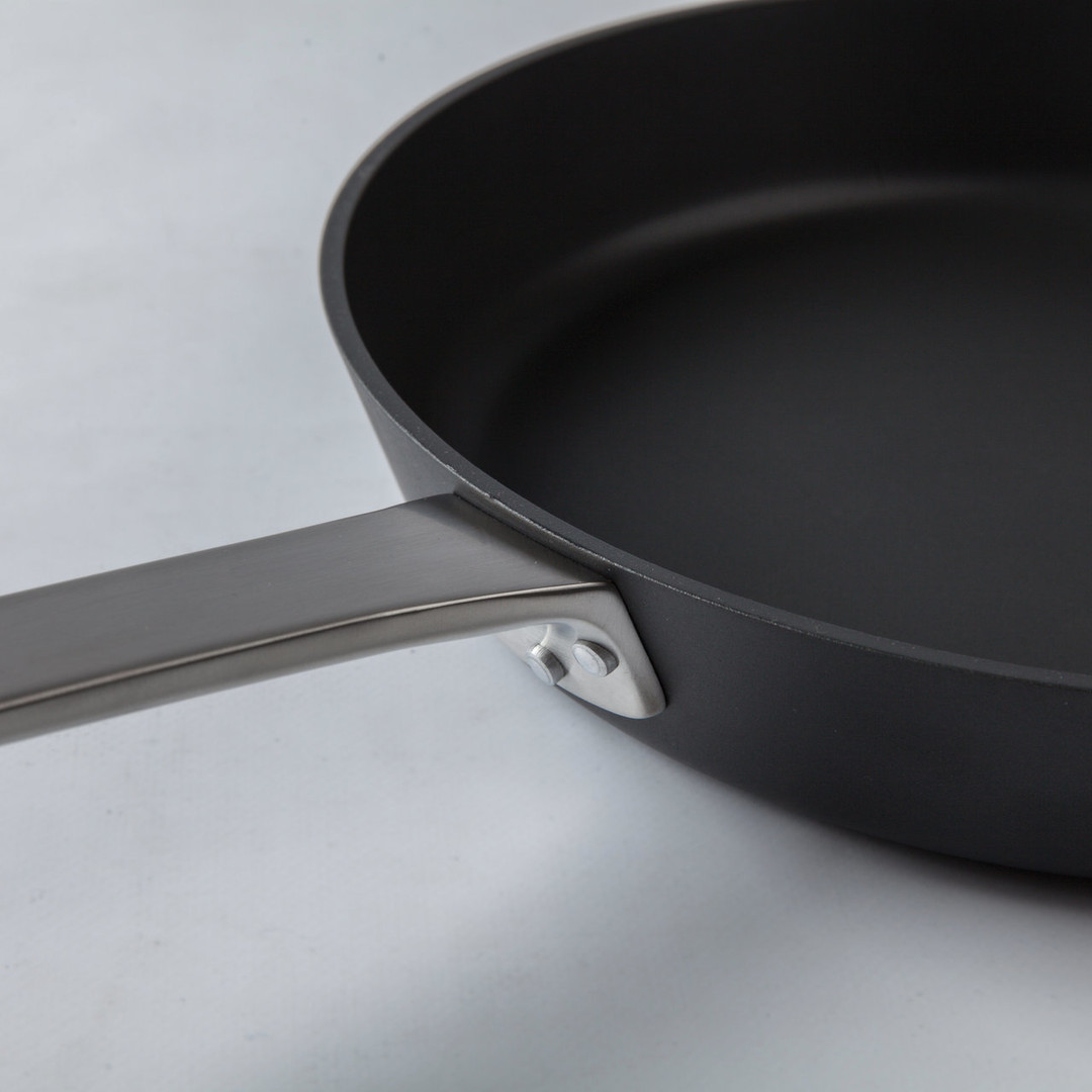 Эта антипригарная сковорода, подходящая для крупных порций мяса и птицы, делает возможным приготовление с минимальным использованием жира или совсем без него.