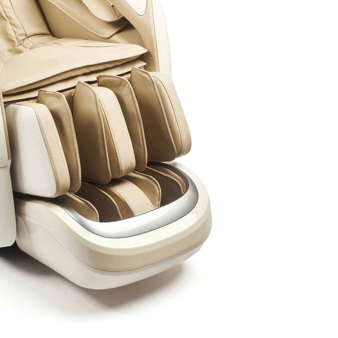 - Функция растяжки позвоночника - при захвате голеней массажными подушками, кресло опускает и вытягивает нижнюю часть туловища, помогая снять напряжение в области поясницы. Этот вид массажа особенно полезен для людей, испытывающих длительные статические или динамические нагрузки в области спины и поясницы.