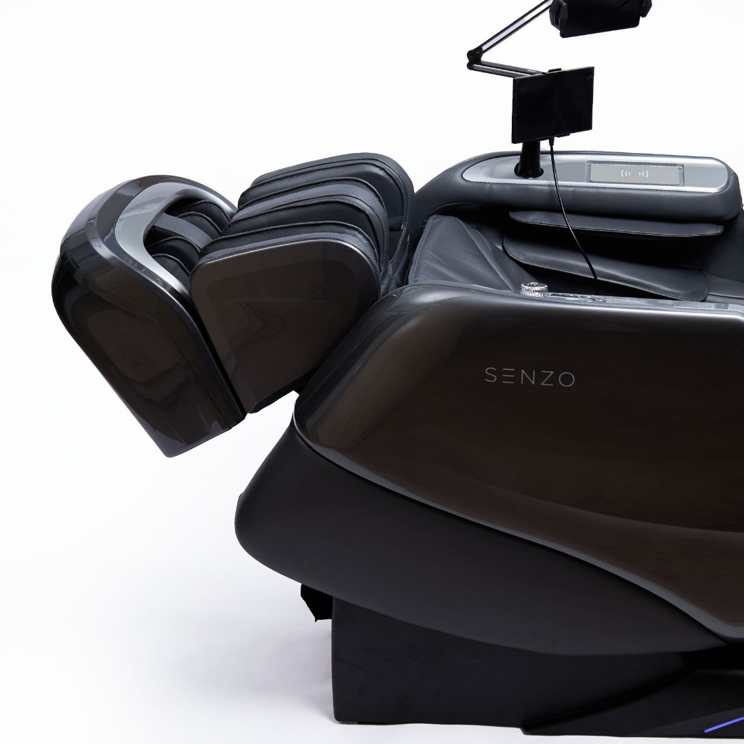 • Функция растяжки позвоночника - при захвате голеней массажными подушками, кресло опускает и вытягивает нижнюю часть туловища, помогая снять напряжение в области поясницы. Этот вид массажа особенно полезен для людей, испытывающих длительные статические или динамические нагрузки в области спины и поясницы.