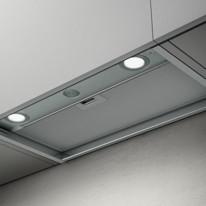 • Встраиваемая вытяжка предназначена для монтажа в навесной шкафчик, за счет чего обеспечивается аккуратный внешний вид.