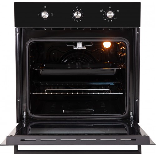 Модель MBS DG-605BL может работать в трёх режимах, управление которыми производится удобными ручками. Объем духовки целых 71 литр, а процесс ее очищения происходит посредством гидролизной очистки. MBS DG-605BL комплектуется двумя универсальными противнями и решеткой для гриля. При желании вы всегда сможете докупить камень для пиццы и комплект телескопических направляющих.