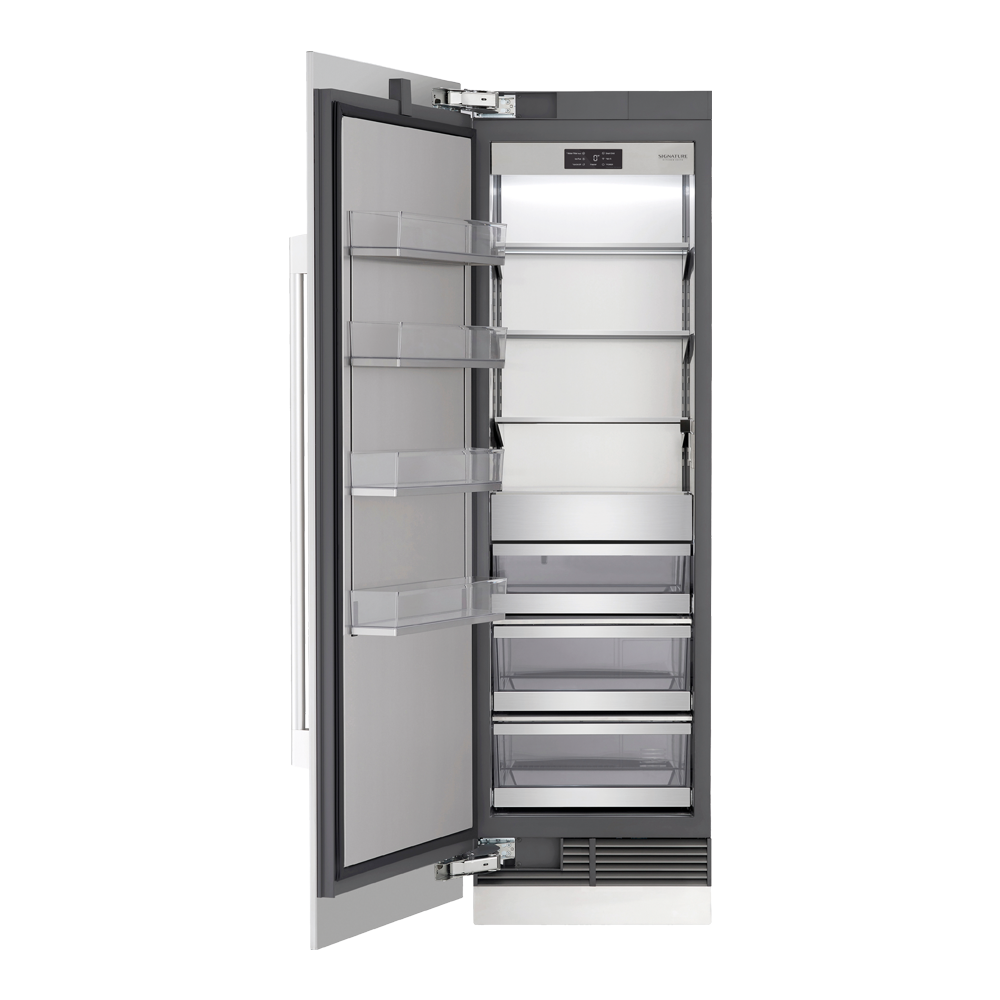 Просторные, исключительно точные морозильные камеры подходят для того, чтобы использовать их как отдельностоящий прибор, установить стальные панели Signature Kitchen Suite или навесить мебельный фасад.